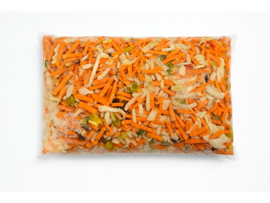 Obsahuje mrkev, zelí, papriku, cibuli, houbu čína a bambus, což vytváří ideální základ pro rychlé a chutné wok pokrmy, smažené nudle i rýžová jídla.