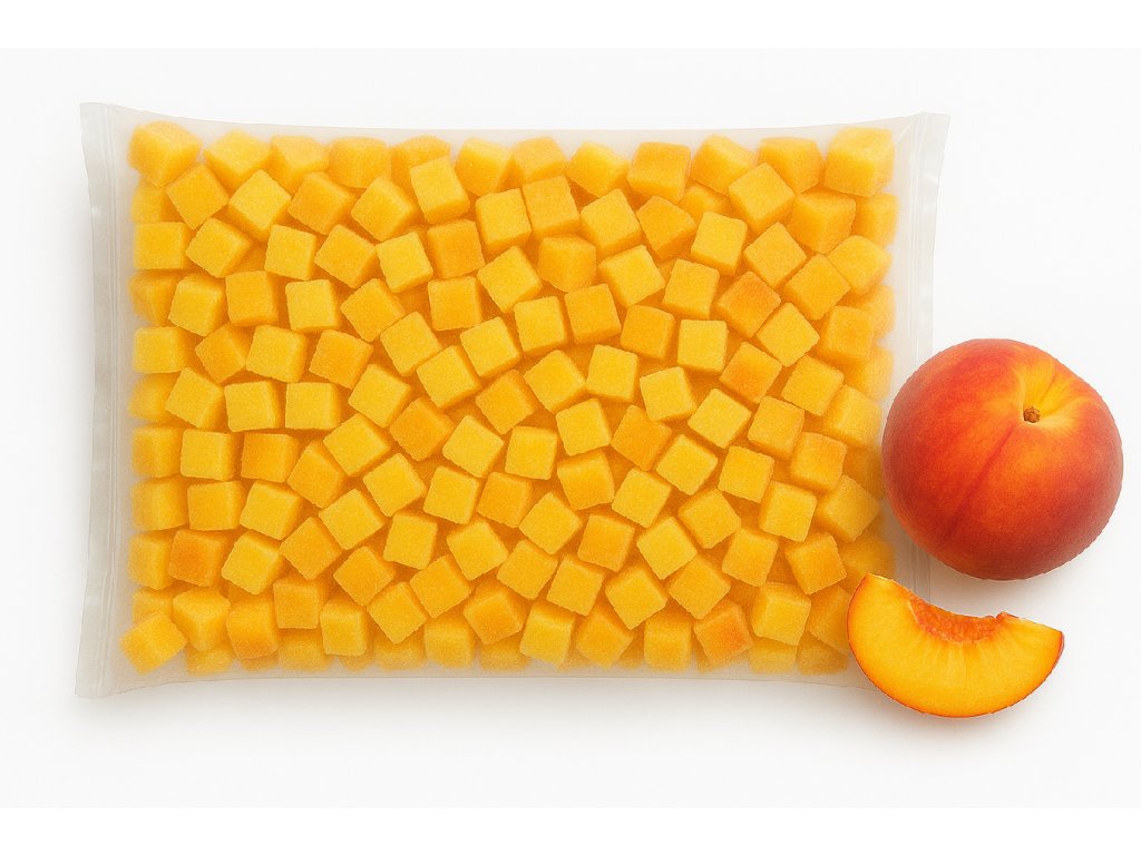 Dopřejte si chuť letních broskví kdykoli během roku. Naše mražené broskve nakrájené na pravidelné kostičky o velikosti přibližně 1 × 1 cm jsou zpracovány z pečlivě vybraných, dokonale vyzrálých plodů, které se ihned po sklizni hluboce zmrazí. Díky tomu si zachovávají svou přirozenou sladkost, šťavnatost, vitaminy i sytě oranžovou barvu dužniny.