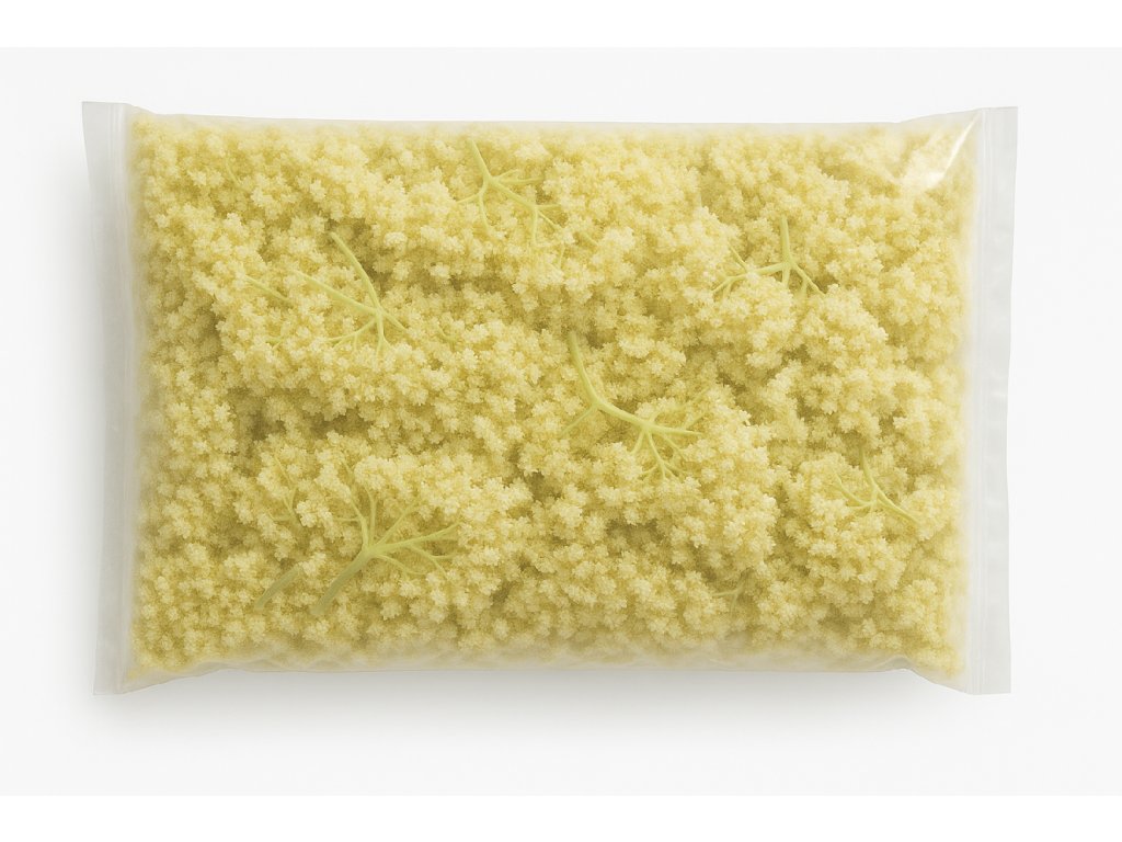 Prémiové mražené květenství černého bezu (Sambucus nigra) pečlivě sklizené v plné zralosti a okamžitě zmražené, aby si uchovalo svou jedinečnou vůni, jemnou chuť a světlou barvu. Ideální surovina pro gastronomii, výrobu nápojů, sirupů, dezertů nebo čajových směsí.
